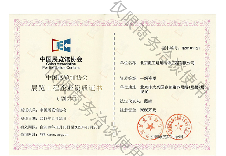 中國展覽館協會展覽陳列工程設計與施工一體化壹級資質